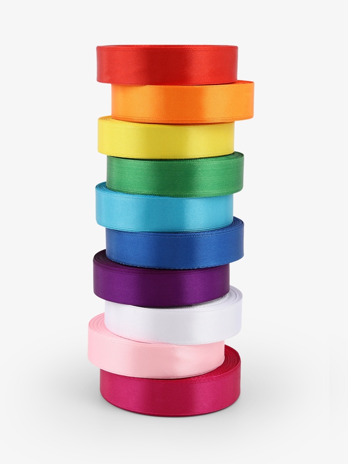 Набор лент атласных (10шт) 20мм*25±1ярд(23м±1м) №01/04/15/19/20/25/26/27/34/40 радуга АУ