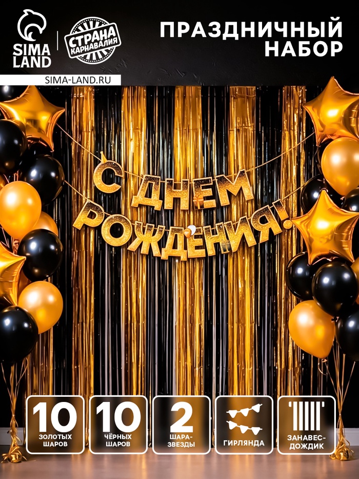 Свеча для торта, цифра 6 + воздушные шары, 5 шт., золото