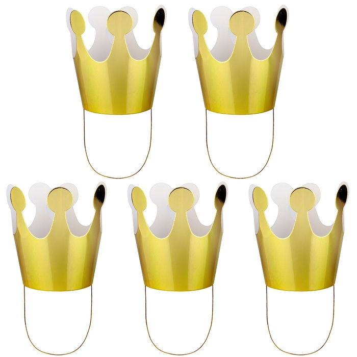 Корона бумажная золото, металлик, 6,5*10 см, 5 шт.