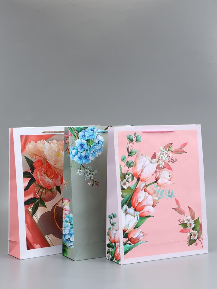 Пакет подарочный ламинированный «Полевые цветы», персиковый с розовым, МИКС, 33×42.5×10 см