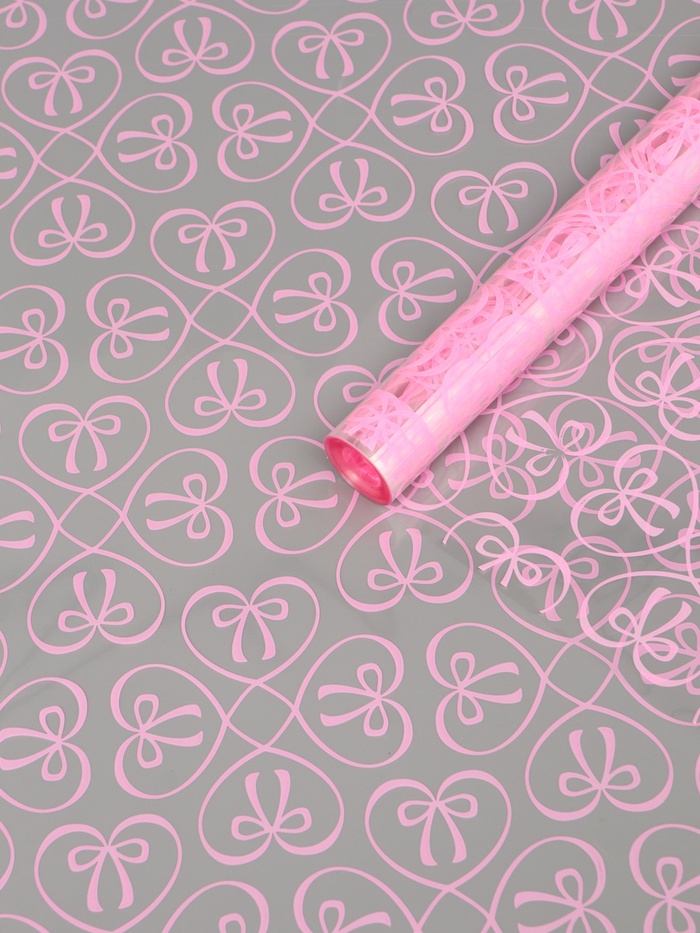 Плёнка для цветов «Бантики», прозрачная/розовая, 0.6×9.3±5% м, 40 мкм, 200 г