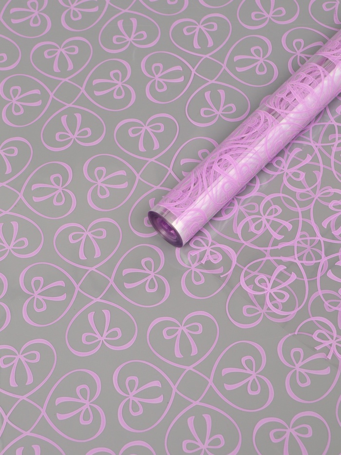 Плёнка для цветов «Бантики», прозрачная/светло- сиреневая, 0.6×9.3±5% м, 40 мкм, 200 г