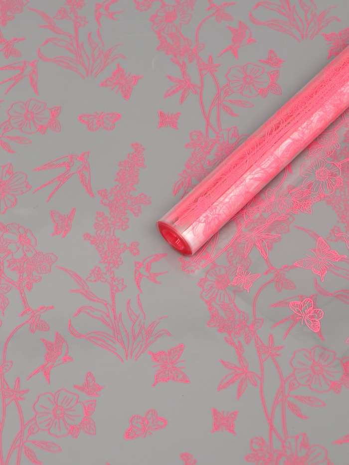 Плёнка для цветов «Ласточки», прозрачный/розовый туманный, 0.6×9.3±5% м, 40 мкм, 200 г