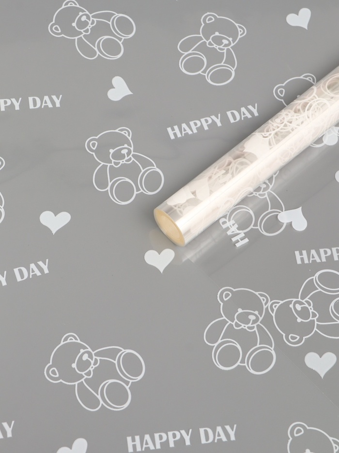 Плёнка для цветов «Мишки», прозрачная/белая, 0.7×7.6 м, 40 мкм, 200 г