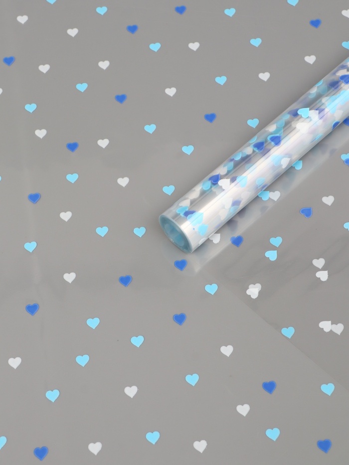 Плёнка для цветов «Сердечки конфетти», прозрачный/сине-голубой, 0.7×7.6 м, 40 мкм, 200 г