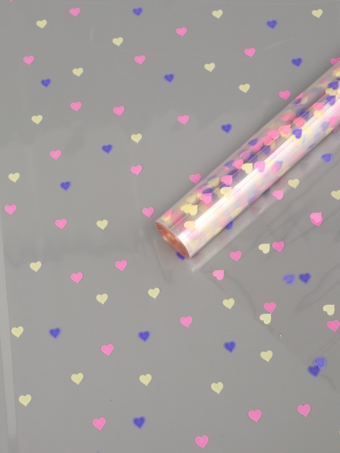Пленка для цветов «Сердечки конфетти», прозрачный/микс, 0.7×7.6 м, 40 мкм, 200 г