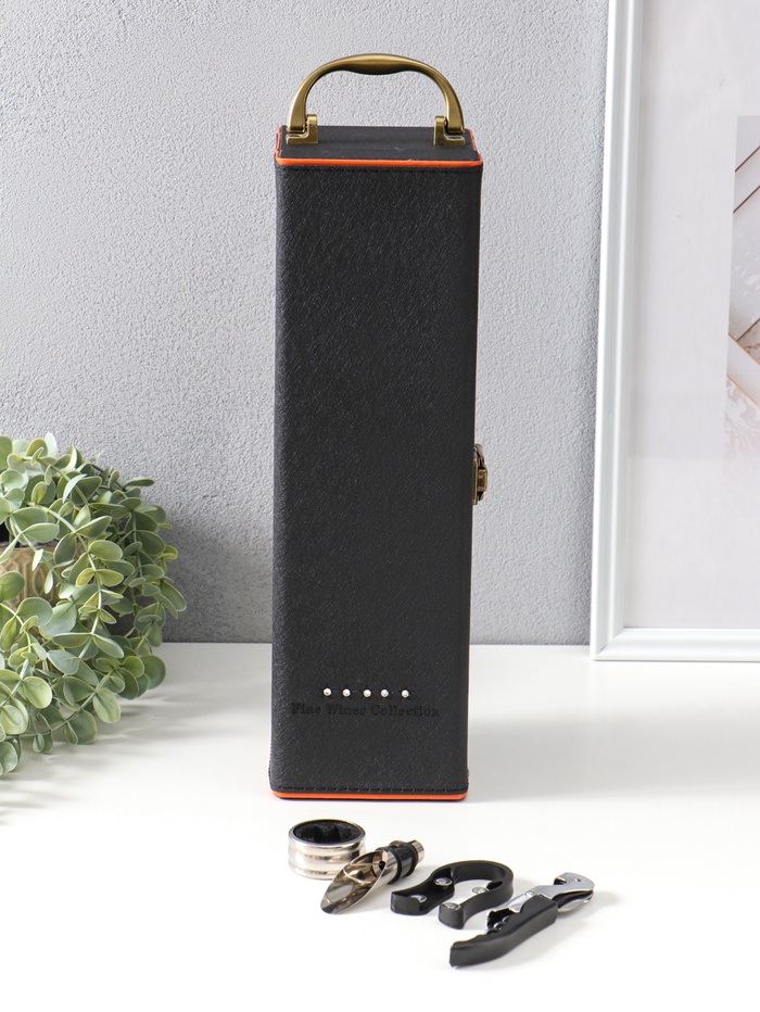 Шкатулка подарочная под бутылку «Чёрная с оранжевой вставкой», и набор 4 предмета, 35×10×11.5 см