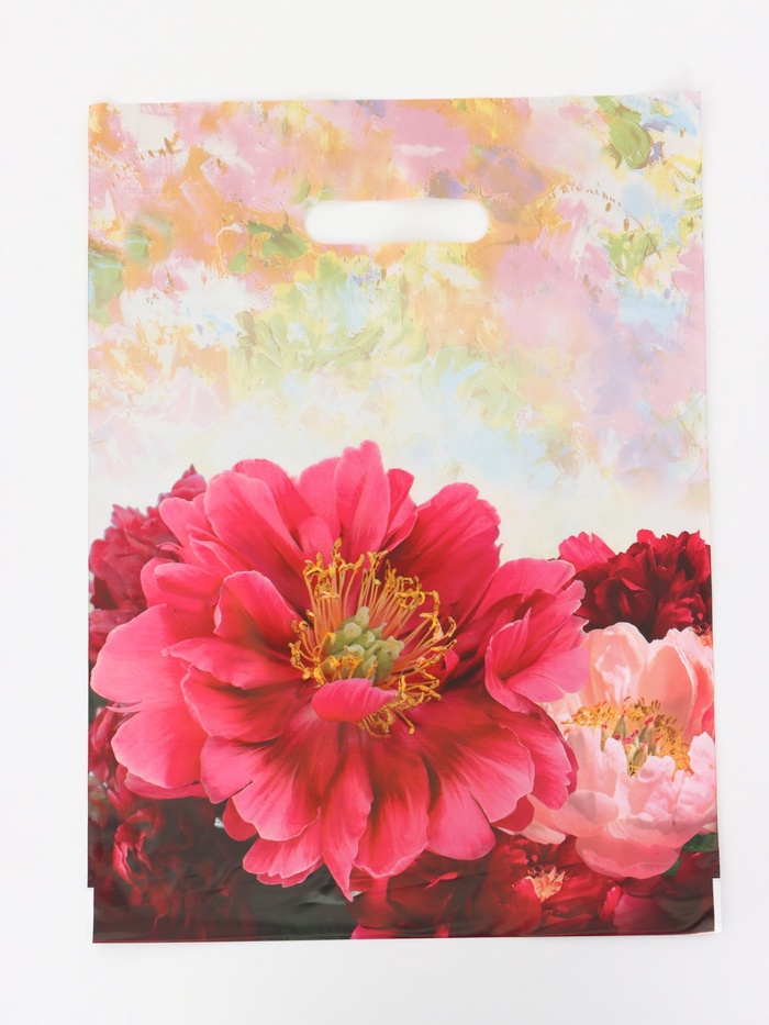 Пакет ламинированный двухсторонний «Пионы», с тишью и открыткой, S, 12 х 15 х 5.5