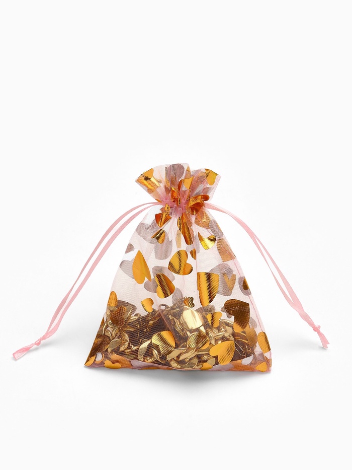 Набор мешочков подарочных 100шт. "Сердечки", 10*12, цвет розовый с золотом (4621385)