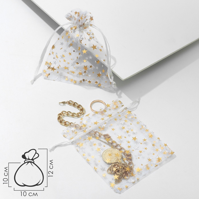 Набор мешочков подарочных 100 шт. «Звёздная россыпь», 10×12, цвет белый с золотом (4621381) 109551