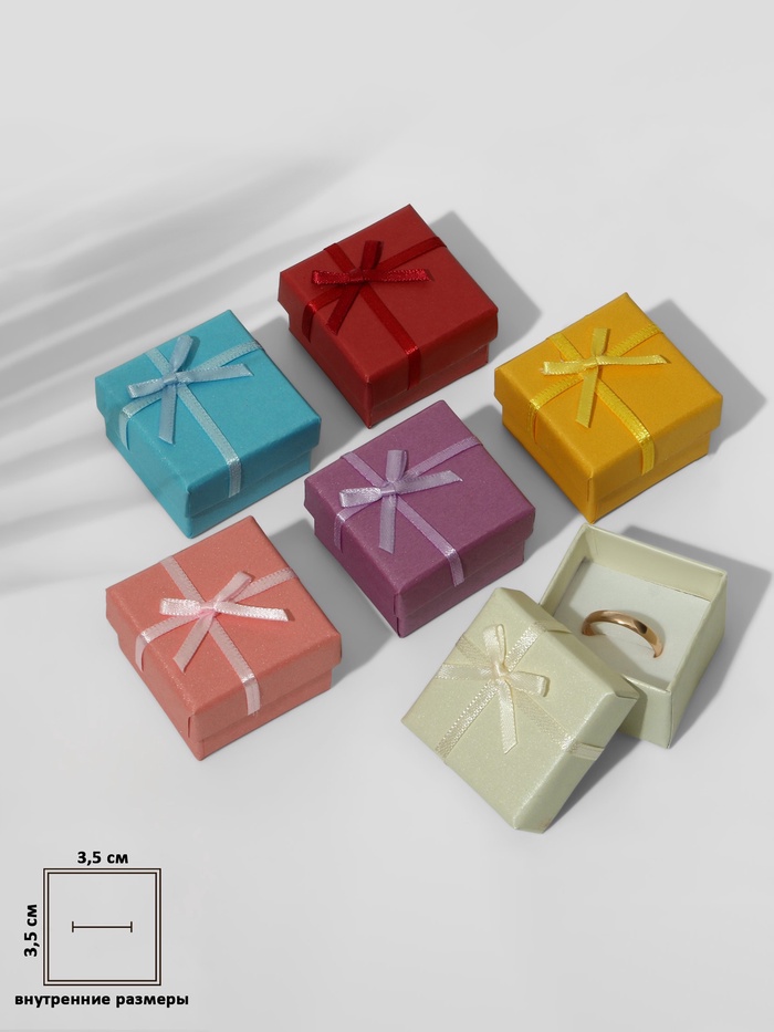Набор коробочек подарочных 6шт. под кольцо «Перламутр» с бантиком, 4×4, цвет МИКС (127427) 109568