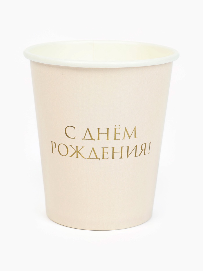 Стакан одноразовый бумажный «С Днём рождения», бежевый, 250 мл