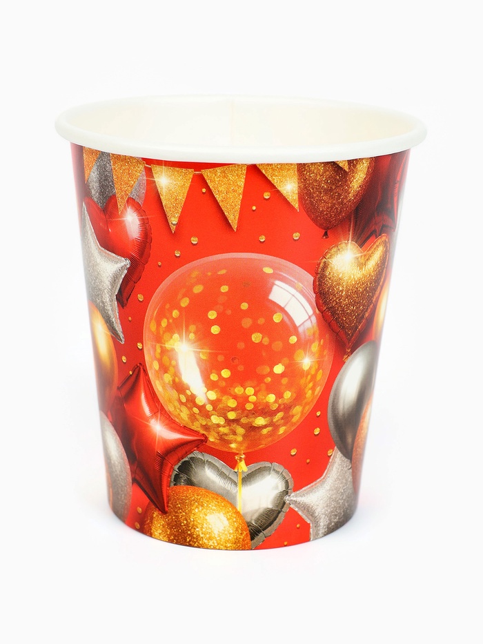 Стакан одноразовый бумажный «Воздушные шары фольга», красный 250 мл