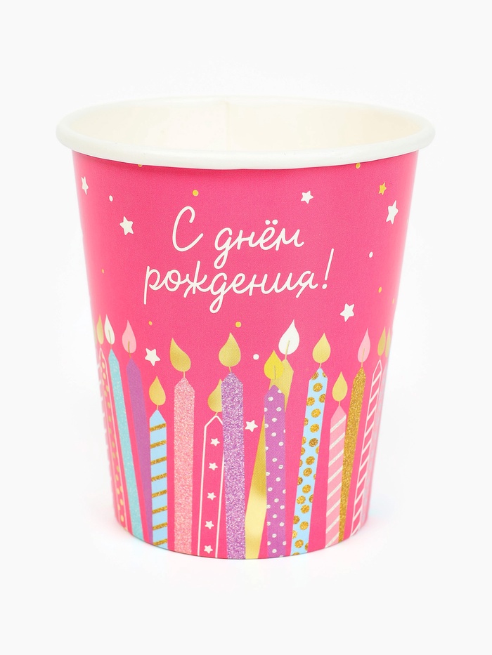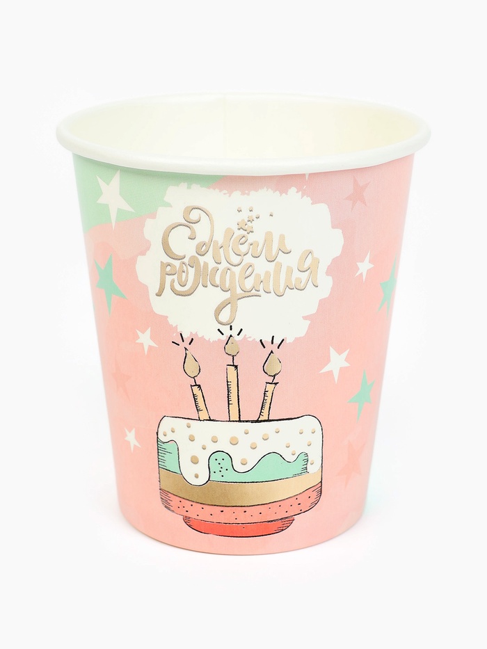 Набор стаканов бумажных «С Днём рождения», универсальный, 6 шт