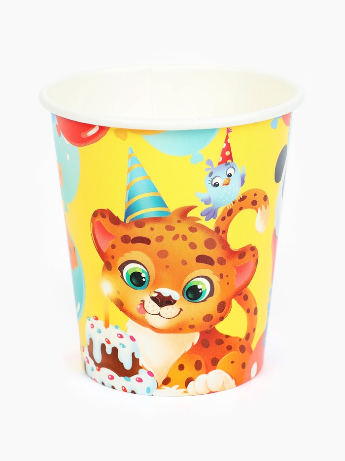 Стакан одноразовый бумажный «С Днём рождения, весёлые зверята», желтый, 250 мл