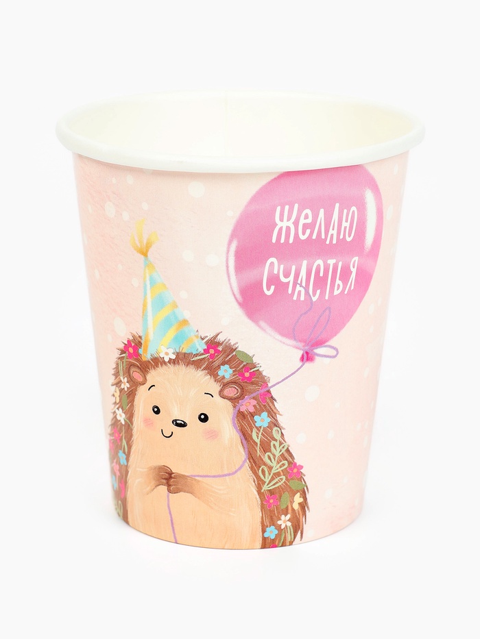 Стакан одноразовый бумажный «Желаю счастья, ёжик», розовый, 250 мл