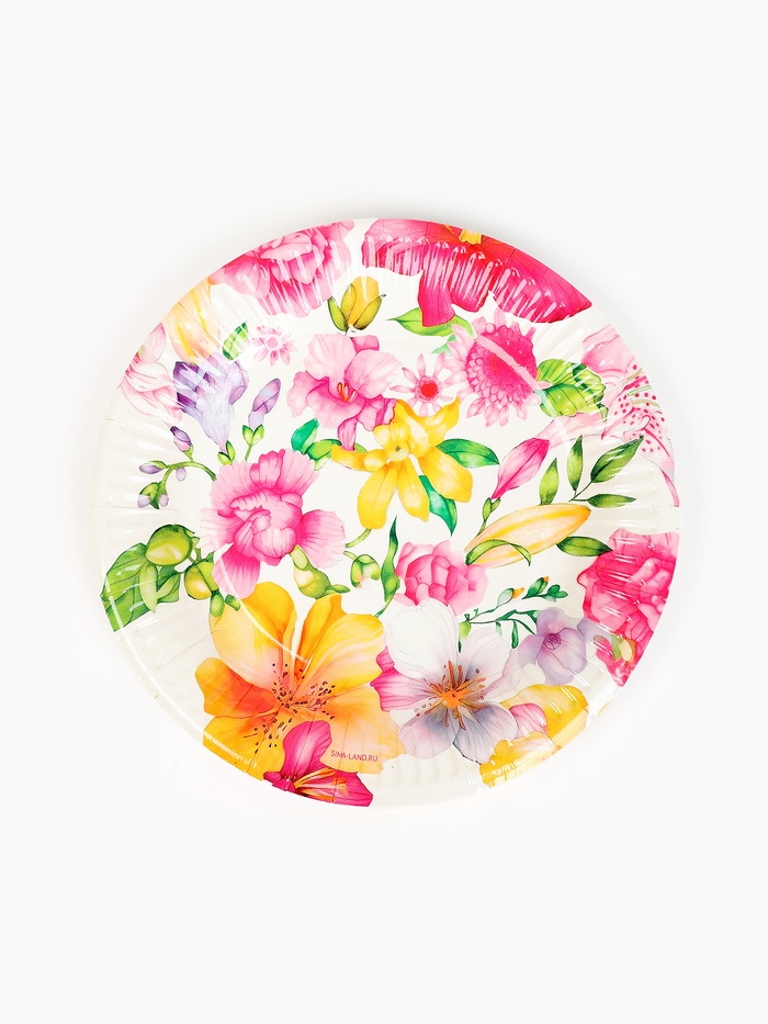 Тарелка одноразовая бумажная «Акварельные цветы», белая, 18 см