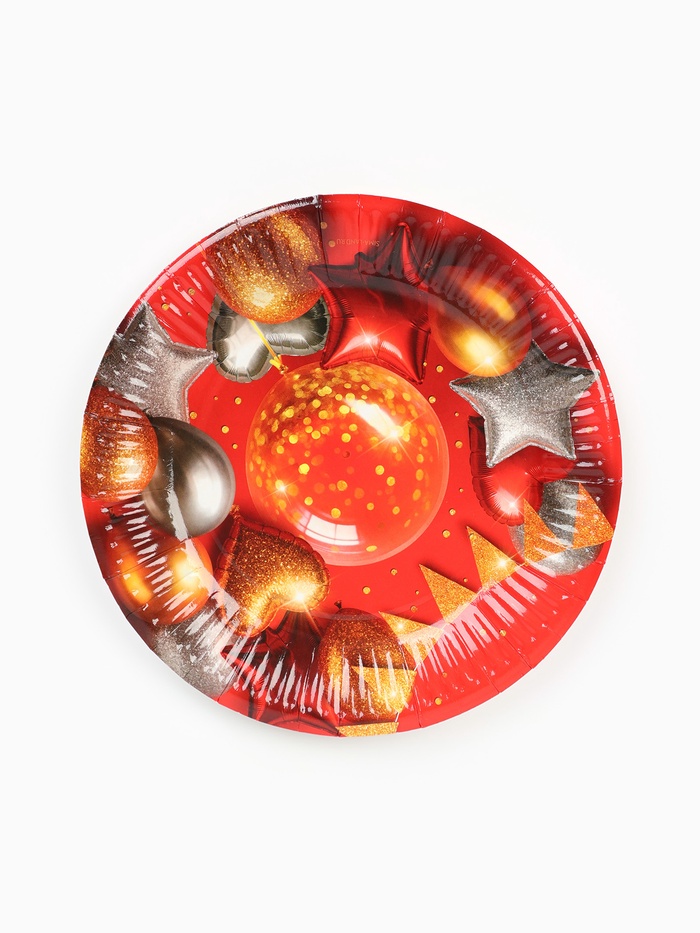 Тарелка одноразовая бумажная «Воздушные шары фольга», красная 18 см