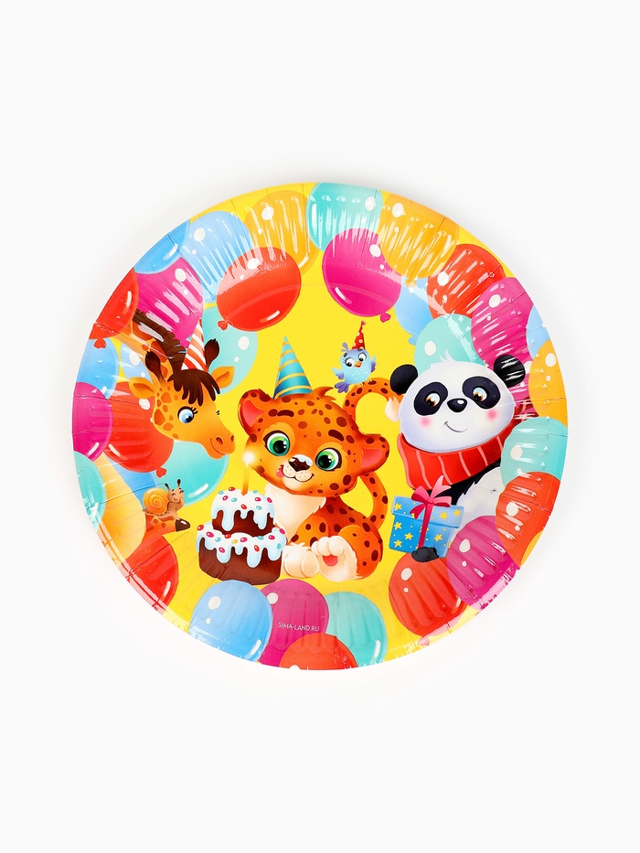 Тарелка одноразовая бумажная «С Днём рождения, весёлые зверята», жёлтая, 18 см