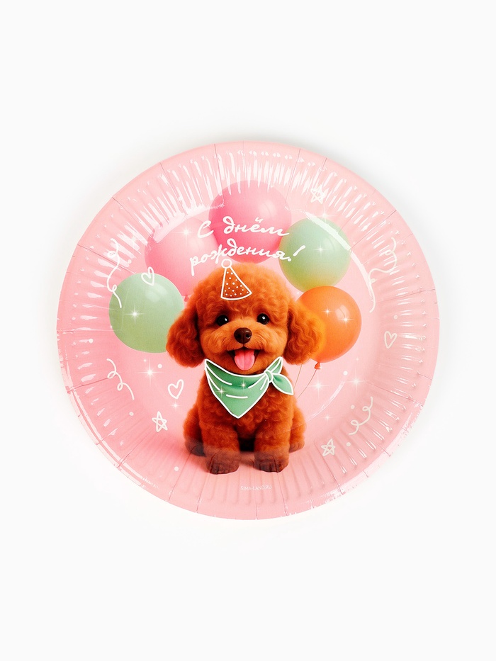 Тарелка одноразовая бумажная «С Днём рождения, собачка», розовая, 18 см
