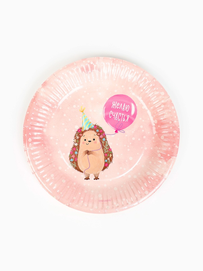 Тарелка одноразовая бумажная «Желаю счастья, ёжик», розовая, 18 см