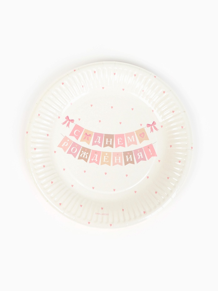 Набор тарелок бумажных «С Днём рождения» для девочки, 6 шт