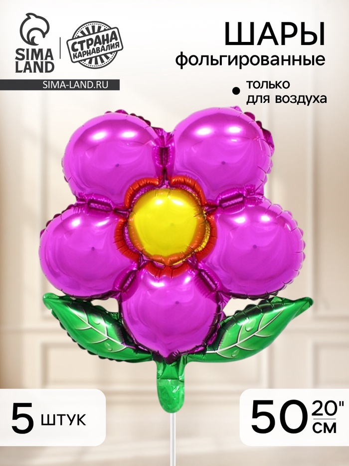 Воздушный шар фольгированный 20" «Цветок», фуксия, набор 5 шт.