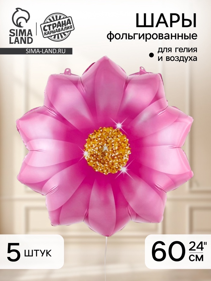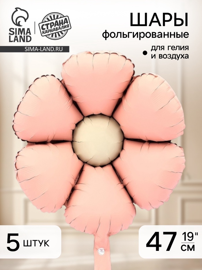 Воздушный шар фольгированный 19" «Ромашка», розовый, набор 5 шт.