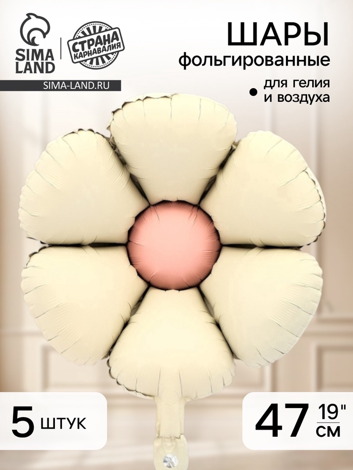 Воздушный шар фольгированный 19" «Ромашка», молочно - белый, набор 5 шт.