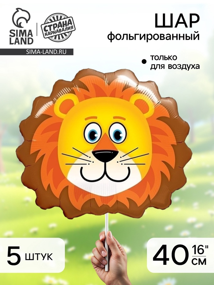 Воздушный шар фольгированный 16" «Лев», набор 5 шт.