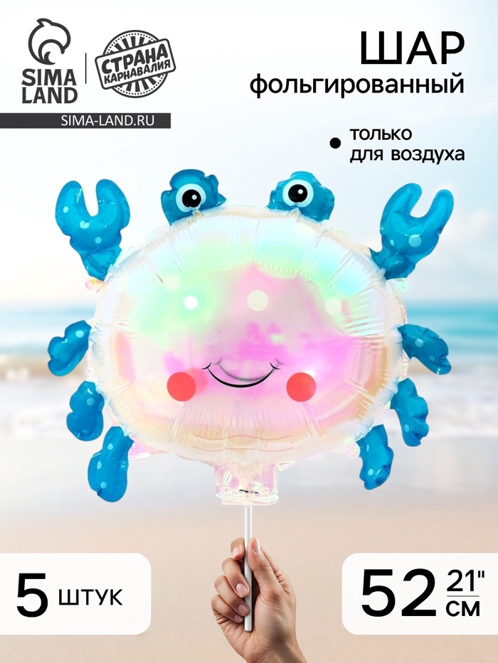 Воздушный шар фольгированный 21" «Краб» с палочкой, набор 5 шт.