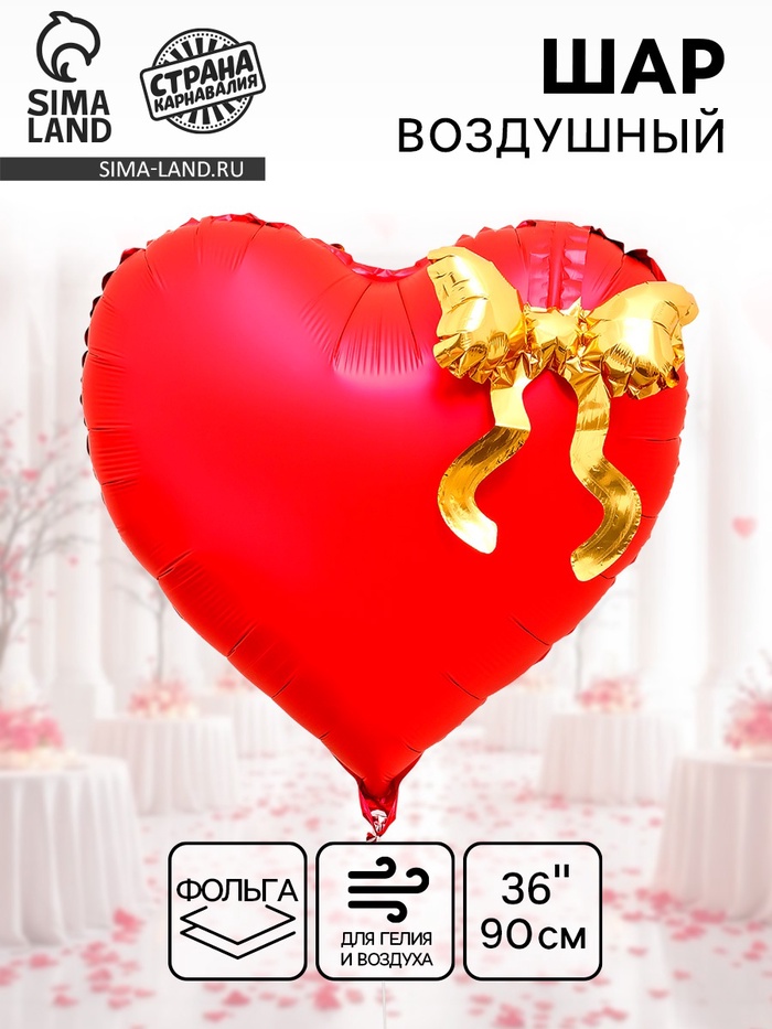 Воздушный шар фольгированный 36" «Красное сердце с бантом»