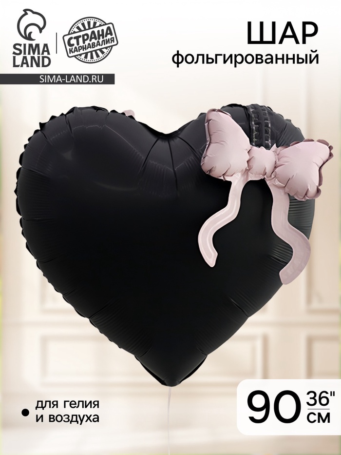 Воздушный шар фольгированный 36" «Чёрное сердце с бантом»