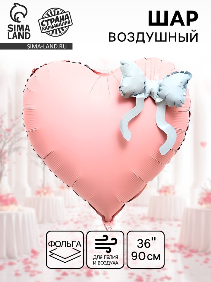 Воздушный шар фольгированный 36" «Розовое сердце с бантом»