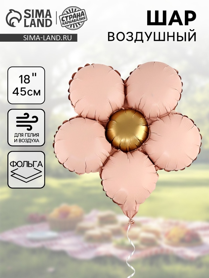 Воздушный шар фольгированный 18" "Цветочек", матовый, цвет молочный, набор 5 штук
