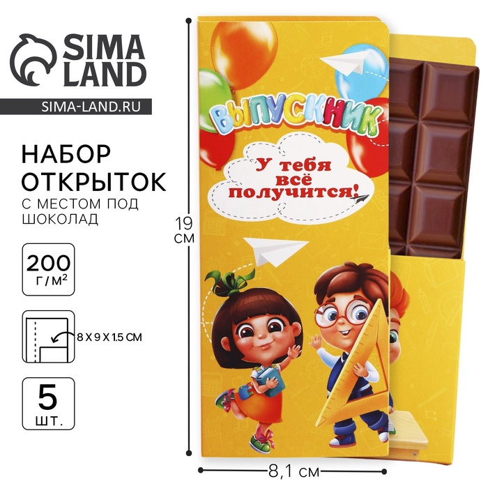 Открытки с местом для шоколадки, набор из 5 шт. «Выпускник! У тебя всё получится!»