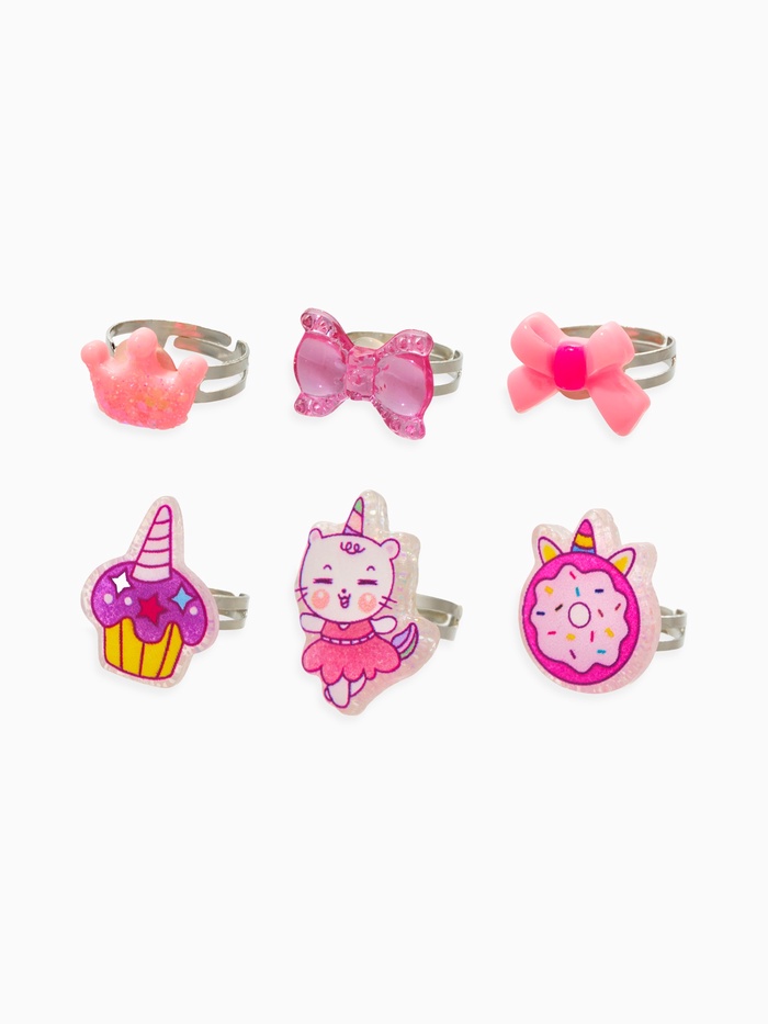 Кольца детские набор 6 шт. «Выбражулька. Котик, единорог», форма МИКС, розовый, безразмерное