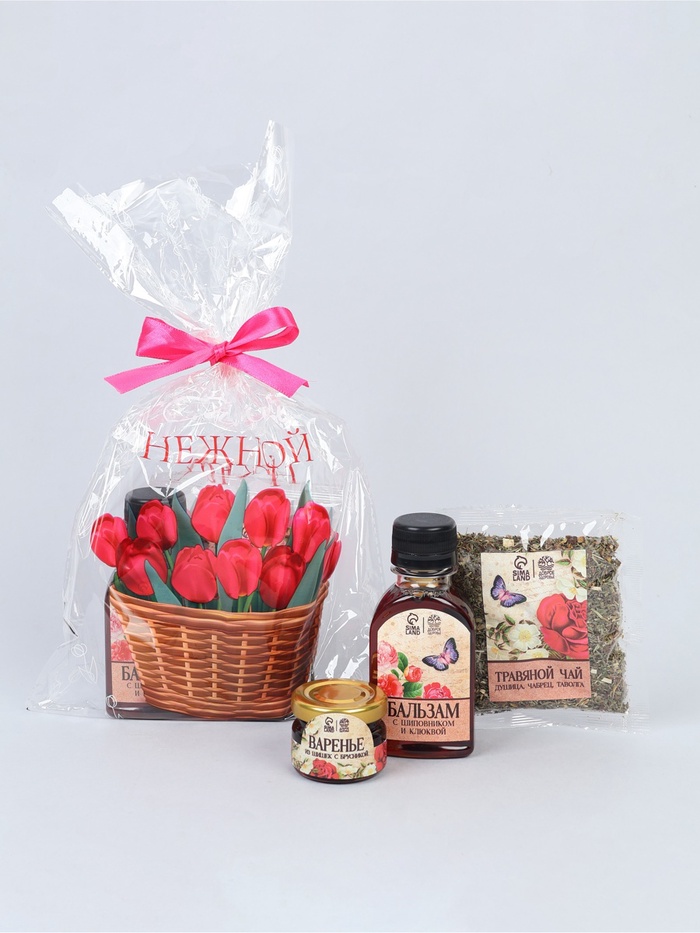 Подарочный набор «8 марта с розами»: чай, варенье, бальзам
