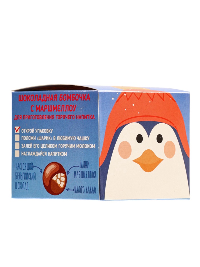 Шоколадная бомбочка с маршмеллоу «Бомбическое какао: пингвин», 35 г