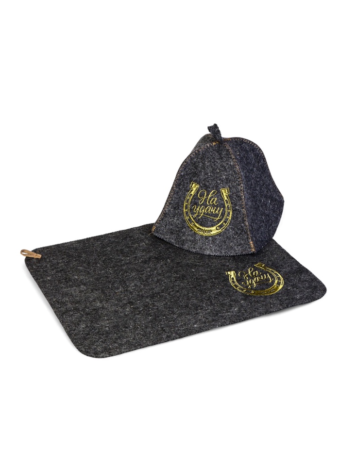 Набор для бани и сауны «На удачу», шерсть 50%, полиэфир 50%, 2 предмета: шапка, коврик