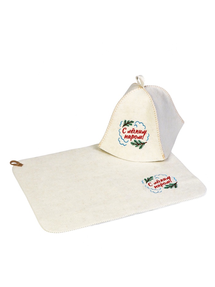 Набор для бани и сауны «С лёгким паром!», шерсть 50%, полиэфир 50%, 2 предмета: шапка, коврик