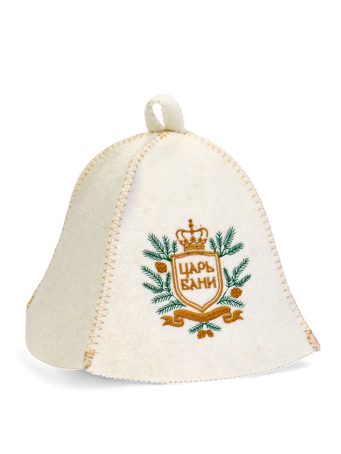 Шапка для бани и сауны «Царь бани», шерсть 50%, полиэфир 50%, белая