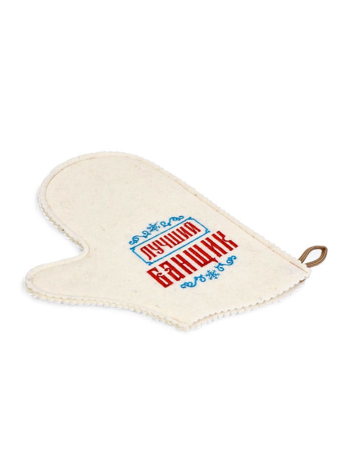 Рукавица для бани и сауны «Лучший банщик», шерсть 50%, полиэфир 50%, белая
