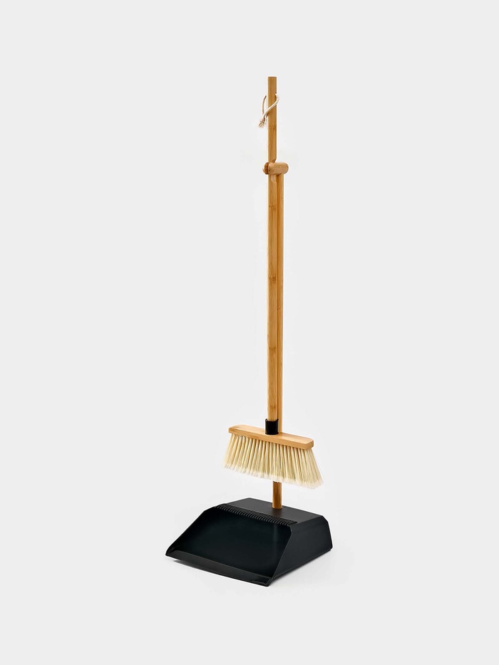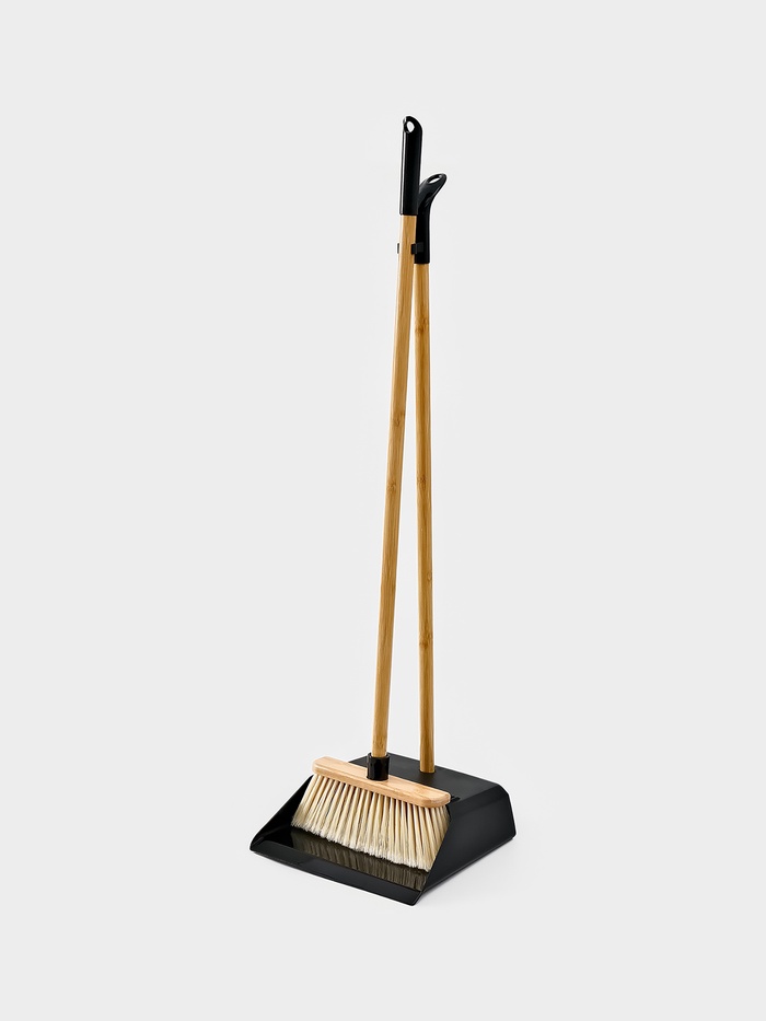Щетка с совком "Meli" бамбуковый держатель, цвет черный 26х24х98 см