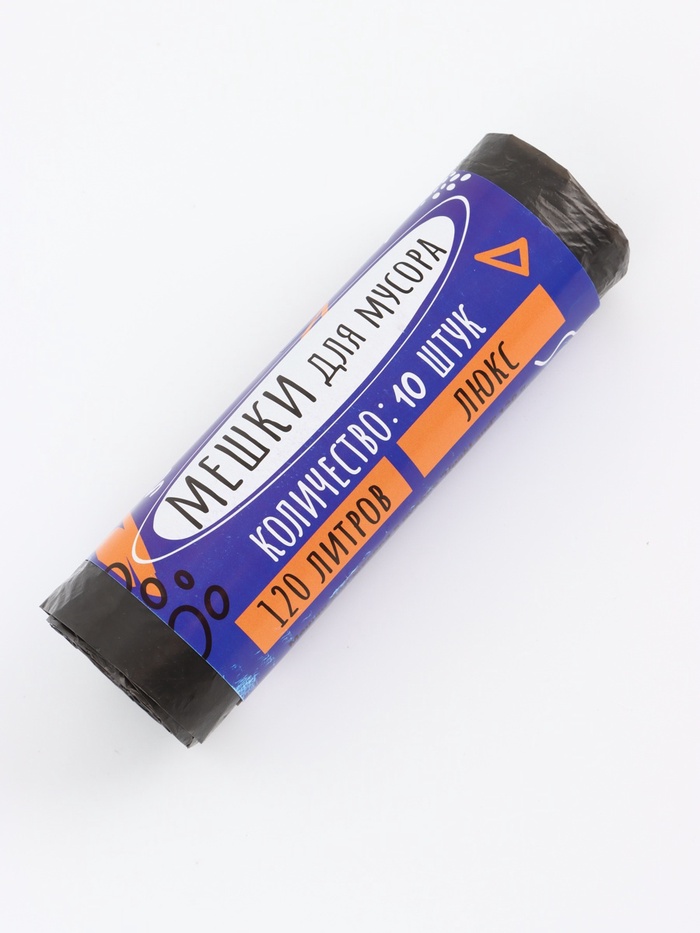 Мешки для мусора 120л, ПНД, толщина 15 мкм, 10 шт в рулоне, цвет черный
