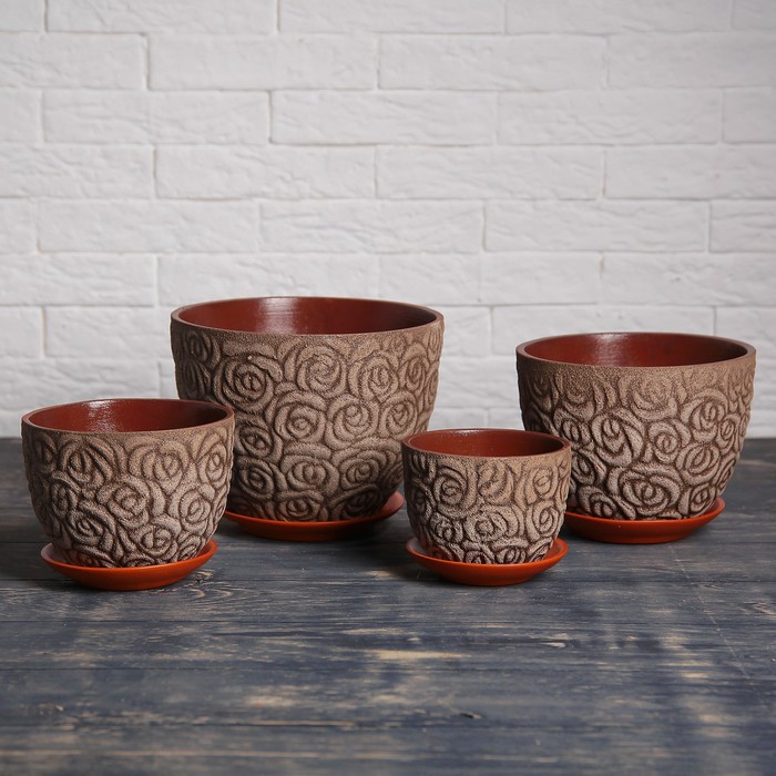 Горшок для цветов «Миндаль», керамика, с поддоном, набор 4 шт.: 400 мл, 1 л, 2.5 л, 5 л