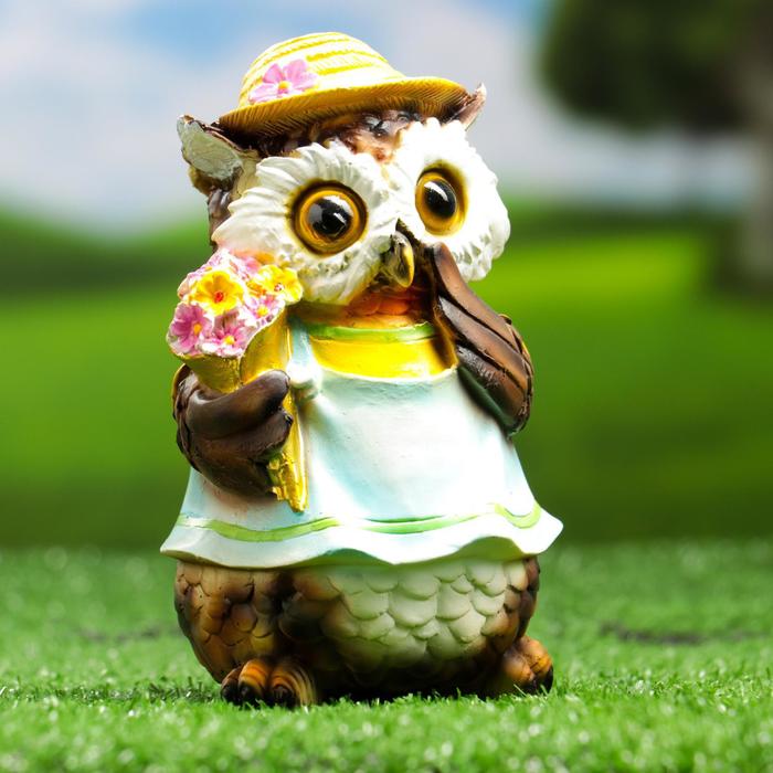 Садовая фигура "Филин в шляпке с букетом" 10х9,5х15см