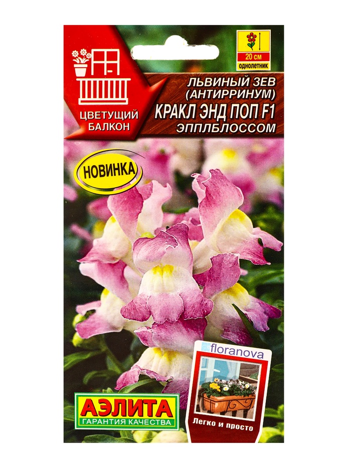 Семена цветов Львиный зев Кракл энд поп F1 эпплблоссом С. Floranova Цветущий балкон, Ц/П,7 шт. 1094