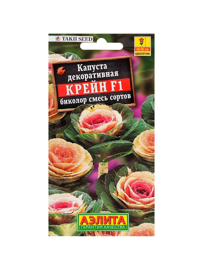 Набор семян Капуста декоративная "Крейн биколор F1", смесь окрасок, О, 4 шт.