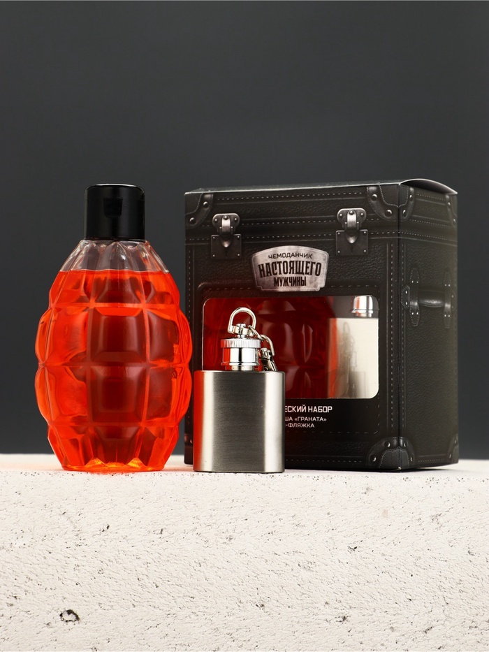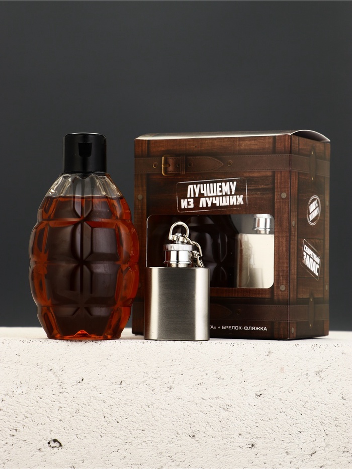 Подарочный набор мужской: гель для душа граната 250 мл и брелок фляжка, Чистое счастье